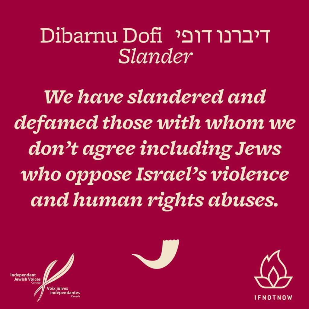 Nous avons calomnié ceux avec qui nous ne sommes pas d’accord, y compris les Juifs et les Juives qui s’opposent à la violence et aux violations des droits de la personne commises par Israël.