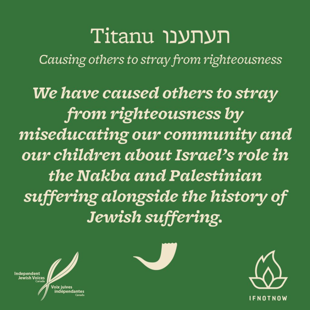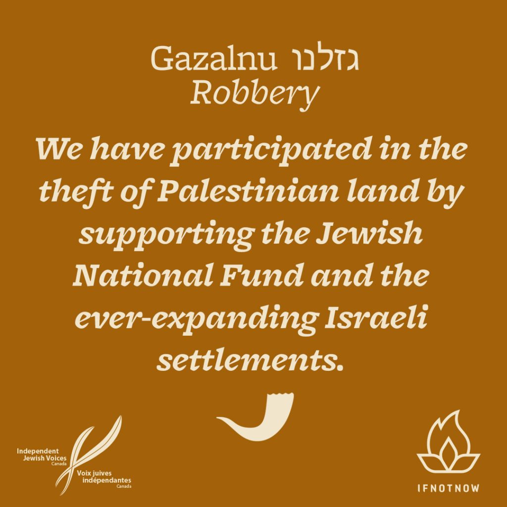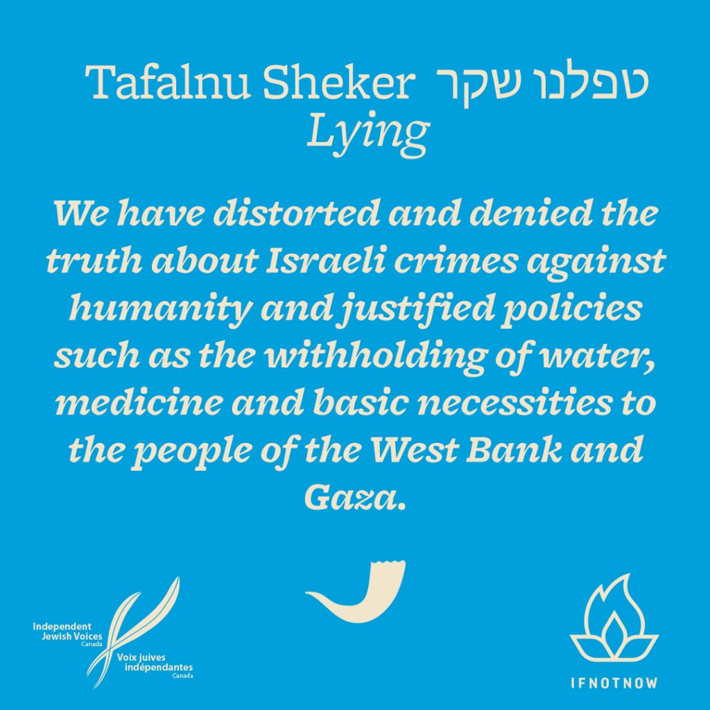 Every day during the Ten Days of Repentance, Independent Jewish Voices Canada and If Not Now-Toronto will post one sin that our community must rectify in the quest for justice and moral accountability- heshbon nefesh