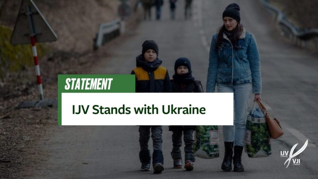 Independent Jewish Voices (IJV) Canada joins with millions of people around the world in calling for an immediate ceasefire and an end to the Russian invasion of Ukraine. We also join with the global anti-war movement in saying “no” to those calling for a broader war, which could have disastrous consequences not only for Ukrainians and Russians, but for the whole of humanity.