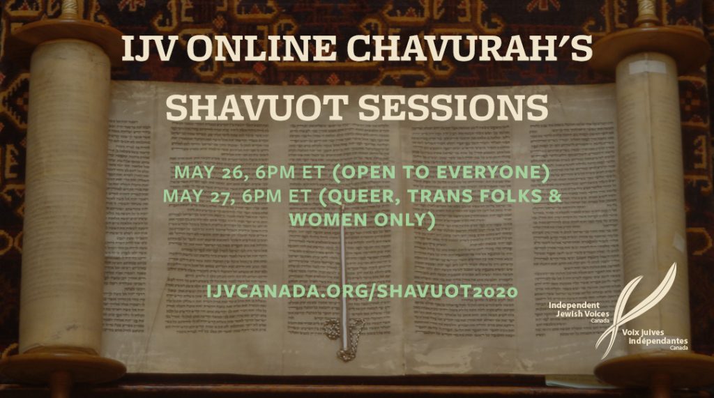 Tuesday, May 26, 6:00-7:15PM (EDT) session – Open to Everyone – moderated by Rabbi Lucia Pizarro, founder of the Jewish Liberation Theology Institute, member of IJV-Hamilton. Email pizarro.lucia [at] gmail.com […]