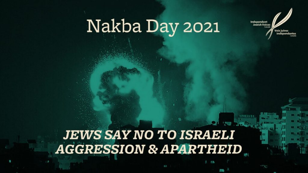 Independent Jewish Voices Canada is standing with Palestinians around the world to mark Nakba Day on May 15th. Nakba (Arabic for “catastrophe”) Day is observed in Palestine and around the world to commemorate the displacement of hundreds of thousands of Palestinians surrounding Israel’s declaration of independence in 1948.